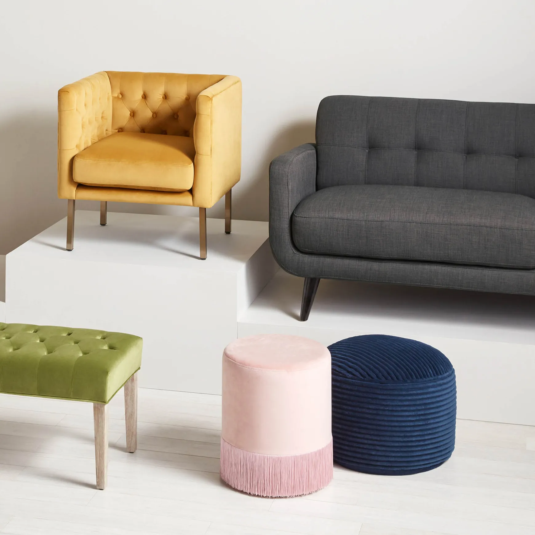 Have A Seat. Shut Out The Noisy World And Let The Homey Feels Sink In. Your Living Room Has Never Felt More Welcoming Than With This Charcoal Grey Tufted Sofa! This Sleek Couch Has A Classy Yet Modern Design And Its Versatile Shade Of Grey Makes It Quite The Looker! Combine With Soft Colorful Pillows And A Warm Knitted Throw For A Cozy Movie Night. Match It With A Coffee Table And Statement Vase To Complete The Ensemble, Then Gather The Gals Around For Some Juicy Gossip And A Latte. Relax. Laugh. Love.